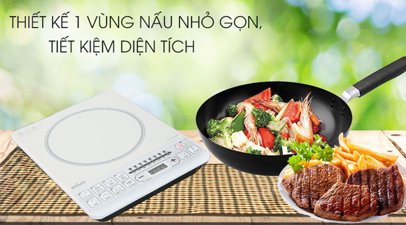 Bếp điện từ KIWA KI-122GW thiết kế cứng cáp, màu trắng tươi sáng, nhỏ gọn với 1 vùng nấu, dùng nấu ăn tốt trong căn bếp nhỏ, hẹp