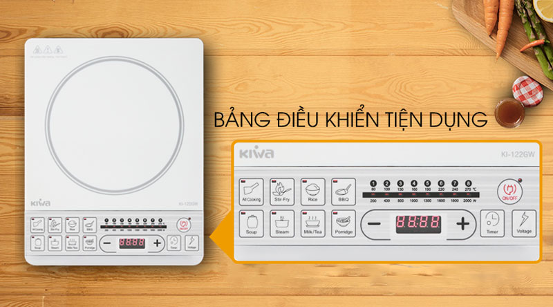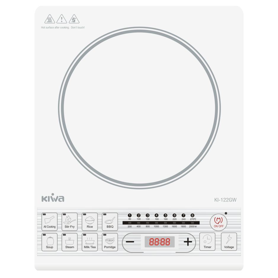 Bếp điện từ KIWA KI-122GW thiết kế đẹp sang, nấu ăn đa dạng, dễ dùng, thích hợp dùng cho người độc thân, gia đình, công ty...