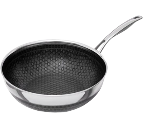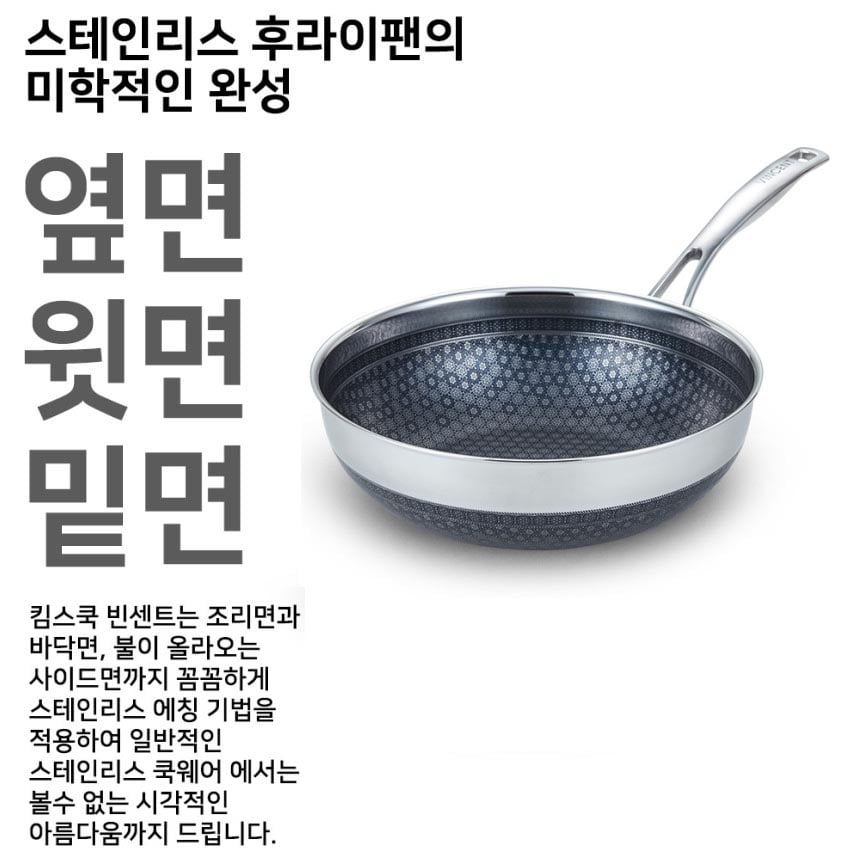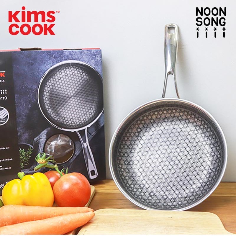 Chảo cạn Noon Song KIMS COOK cấu trúc inox 3 lớp đáy từ chống dính ở hai mặt cùng công nghệ Black Cube tiên tiến vân lục giác chống dính siêu hạng, không trầy xước. Quai inox cách nhiệt có thể cầm nắm trực tiếp. Sản phẩm có thể sử dụng trên nhiều loại bếp khác nhau như: bếp gas, bếp điện, hồng ngoại… kể cả bếp từ và máy rửa chén.
