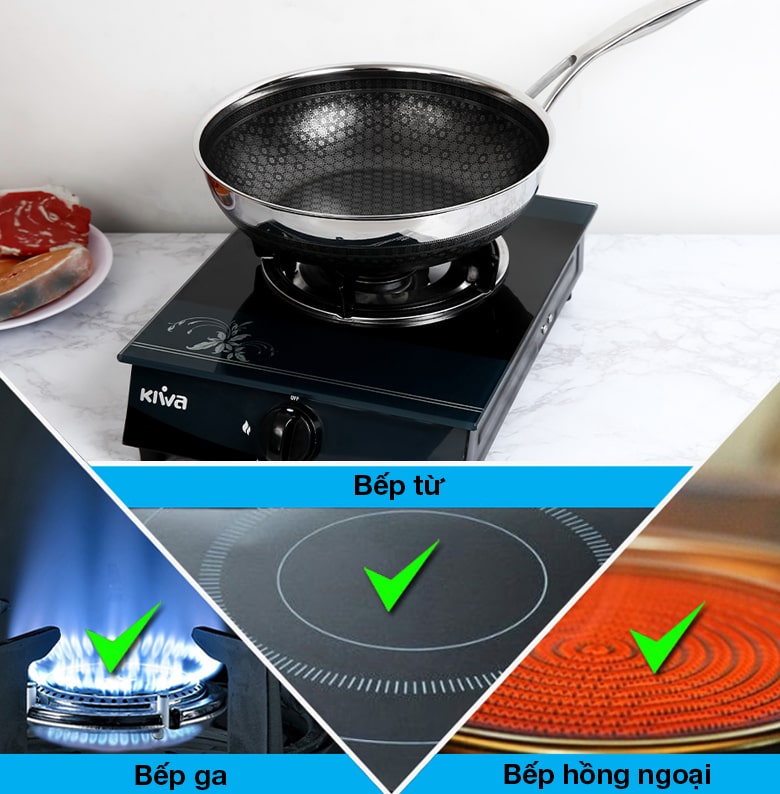 Chảo có thể sử dụng trên bếp ga, bếp hồng ngoại và bếp từ