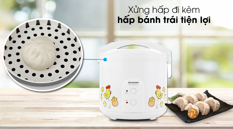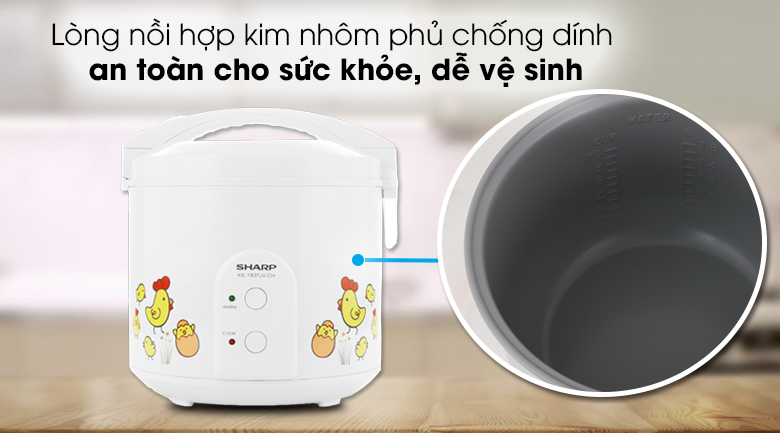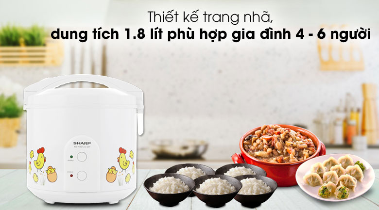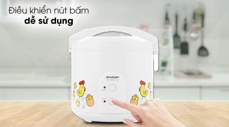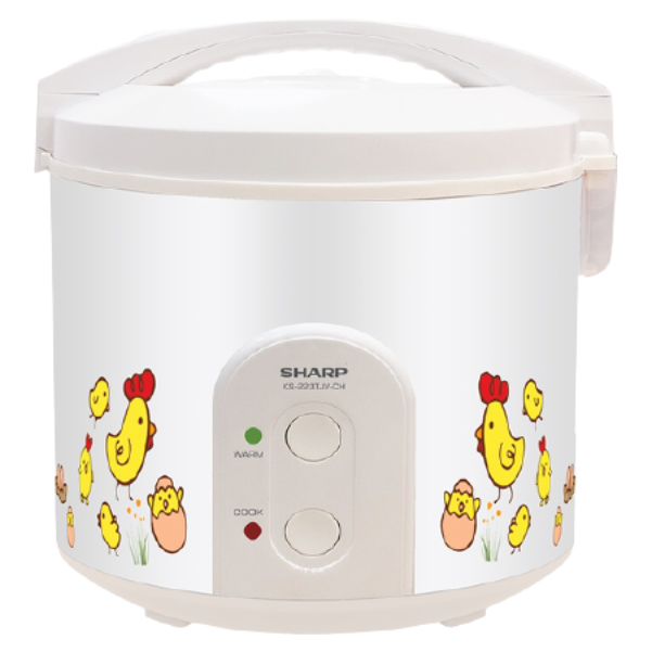 Cơm điện nắp gài SHARP 1.8 lít KS-183TJV-CH màu trắng trang nhã, sử dụng hoa văn hình gà màu vàng dễ thương