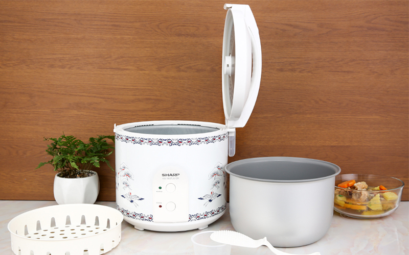 Nồi cơm nắp gài Sharp có dung tích 1.8L, phù hợp cho gia đình từ 4-6 người