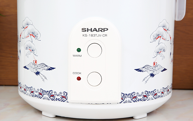 Cơm điện nắp gài SHARP 1.8 lít KS-183TJV-CR có thiết kế đơn giản, màu sắc nhã nhặn với nền trắng có hoa văn con hạc, góp phần tô điểm gian bếp thêm sang trọng, bắt mắt.