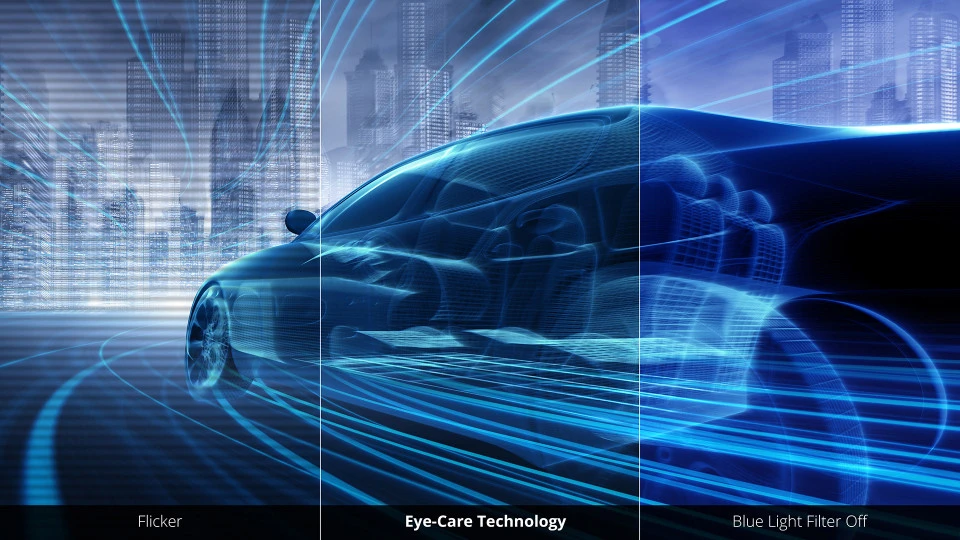 Công nghệ Khử nhấp nháy và Bộ lọc ánh sáng xanh giúp loại bỏ mỏi mắt khi sử dụng lâu dài.
