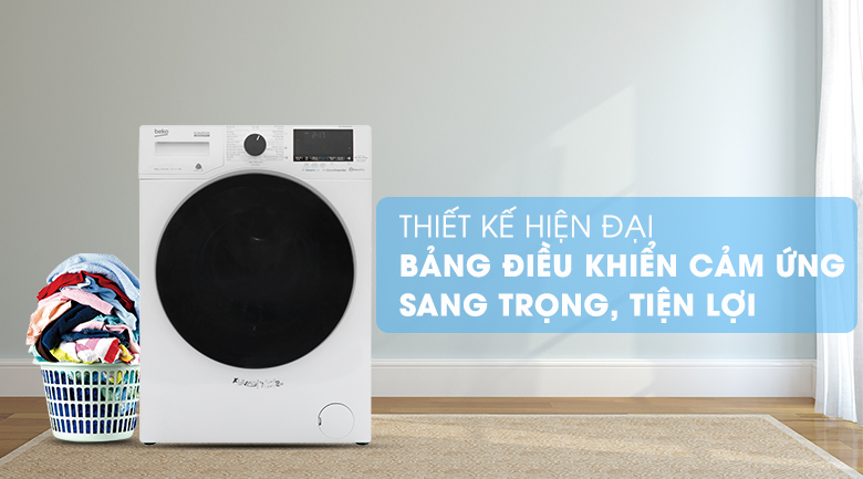 Máy giặt BEKO Inverter 9 kg WCV9649XWST với tông trắng, cửa đen trang nhã và tinh tế, kiểu máy giặt lồng ngang mang đậm phong cách Châu Âu sẽ là thiết kế nội thất trang trọng cho gia đình bạn.