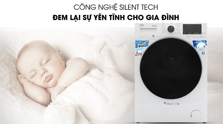 Máy giặt BEKO Inverter 9 kg WCV9649XWST này không chỉ sử dụng công nghệ Inverter mà còn được kết hợp thêm công nghệ Silent Tech. Đây là công nghệ có khả năng tự động cân bằng tải trọng, giảm xóc và giảm rung động khi máy hoạt động, mang lại sự yên tĩnh dành cho gia đình bạn, nhất là đối tượng nhạy cảm như người lớn tuổi và trẻ nhỏ.