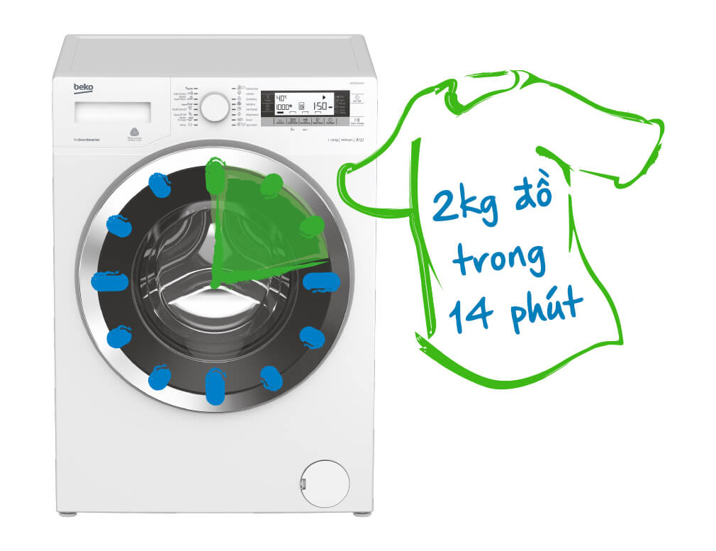Bạn không thể chờ đợi lâu hơn để được diện áo mới mua? Nhưng dĩ nhiên bạn cũng không muốn mặc nó ngay khi mang từ cửa hàng về bởi vì chẳng thể nào biết được có bao nhiêu người đã thử nó trước bạn. Thật may là máy giặt Beko đã có sẵn chương trình giặt siêu nhanh. Chỉ trong 14 phút với Xpress Super Short*, chiếc áo sẽ được giặt và sẵn sàng để bạn mặc ngay. *Với 2kg áo quần ít bẩn