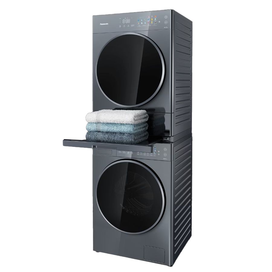 Tháp giặt sấy được thiết kế với kiểu dáng lồng ngang cửa trước vô cùng hiện đại, sở hữu vẻ đẹp sang trọng nhưng không kém phần tinh tế với mặt gương được làm từ vật liệu cao cấp, mang lại sự đẳng cấp, ấn tượng trong mọi không gian sống.