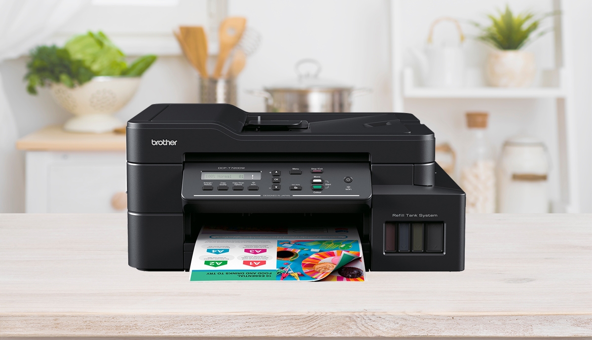 Máy in phun đa năng Brother DCP-T720DW - Máy in phun đa năng có thể In, Scan và Copy. Máy có khả năng in 2 mặt tự động, khay nạp giấy tự động thông minh và in không dây tiện lợi. Sở hữu thiết kế với kiểu dáng nhỏ gọn, các chi tiết tinh tế, dễ dàng bố trí trên bàn làm việc, kệ tủ trong phòng khách, phòng ngủ của gia đình hoặc văn phòng làm việc ở công ty.