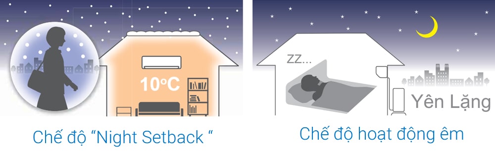 Chế độ "Night Setback" và chế độ hoạt động êm ái