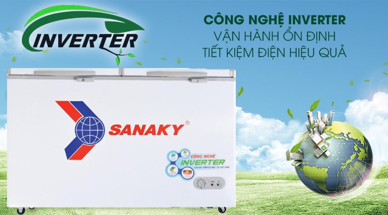 Tủ đông SANAKY Inverter VH-3699A3 được ứng dụng công nghệ mới nhất - công nghệ inverter, dàn máy nén biến tần hoạt động với quy trình đơn giản thông minh giúp tủ tiết kiệm đến hơn 50% điện năng tiêu thụ so với các sản phẩm tủ đông mát thông thường khác.
