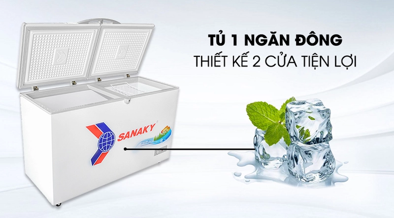 Tủ đông Sanaky VH-2899A1 được thiết kế với hai cánh mở vali dễ dàng sử dụng và an toàn hơn những thiết kế nắp trượt. Có thiết kế khóa nắp nên các gia đình có trẻ nhỏ có thể hoàn toàn yên tâm trẻ không thể mở nắp tủ nghịch phá.