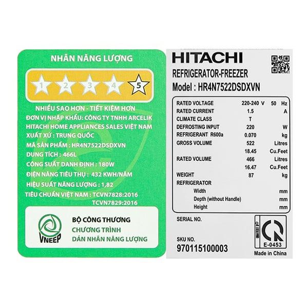 Tủ lạnh HITACHI Inverter 466 lít HR4N7522DSDXVN