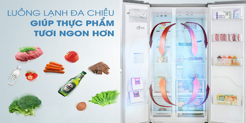 Công nghệ làm lạnh đa chiều nhanh chóng mang hơi lạnh đến từng ngóc ngách của tủ