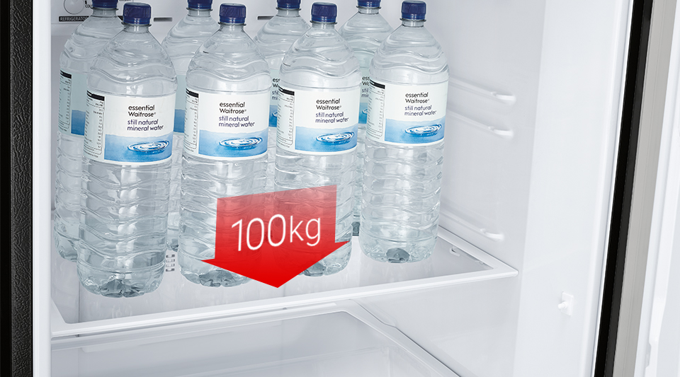 Khay kính chịu lực của tủ lạnh Mitsubishi Electric V50EH có thể chịu lượng lớn thực phẩm mà không lo bị vỡ. Từ đó, người dùng sẽ dễ dàng sắp xếp các thực phẩm hơn.
