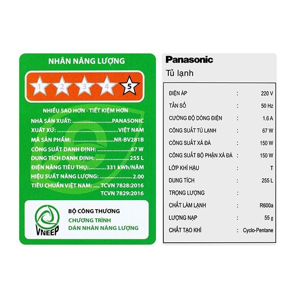 Tủ lạnh PANASONIC Inverter 255 lít BV281BGMV