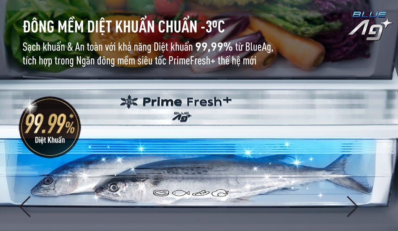 Công nghệ bảo quản thực phẩm: | Ngăn đông mềm diệt khuẩn Prime Fresh+ & Blue Ag+Ngăn rau củ giữ ẩm đến 90% |