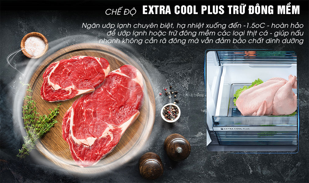 Công nghệ bảo quản thực phẩm | 2 Ngăn giữ tươi (Extra Cool Plus + Fresh zone), 1 Ngăn rau, quả, trái cây (Moisture Capsule) |