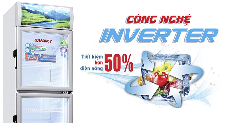 Tủ mát Sanaky VH-358W3L sở hữu công nghệ inverter tiên tiến giúp máy nén vận hành ổn định, êm ái đồng thời giảm chi phí tiền điện một cách đáng kể. Hơn thế nữa, máy nén inverter còn hoạt động bền bỉ, tuổi thọ cao hạn chế hỏng hóc.