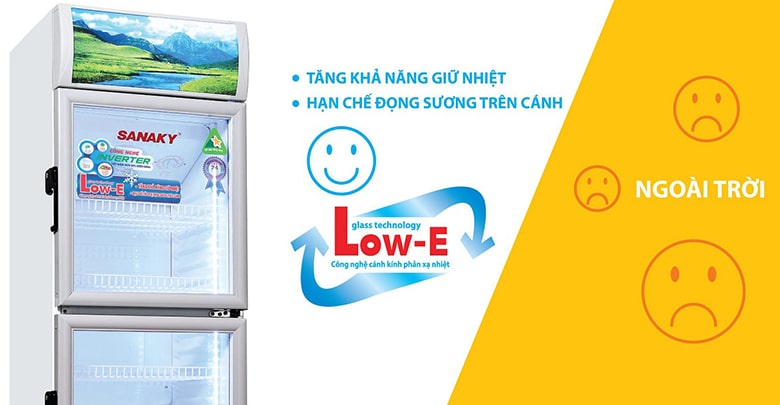 Tủ mát 2 cánh Sanaky 290 lít VH-358W3L được trang bị tấm kính hai lớp chịu lực tốt. Công nghệ LOW-E phản xạ nhiệt, giảm sự phát tán, hấp thụ nhiệt và ngăn chặn tia cực tím làm ảnh hưởng đến thực phẩm bảo quản trong tủ. Hệ thống sưởi kính hiện đại đảm bảo kính luôn khô ráo, không bị mờ và chống nấm mốc. Nhờ đó, khách hàng có thể quan sát thực phẩm bên trong 1 cách dễ dàng mà không cần mở tủ. Thành tủ bằng nhựa ABS dày kết hợp với gioăng từ giúp cửa luôn kín, hạn chế thất thoát nhiệt ra ngoài, tiết kiệm năng lượng hiệu quả.