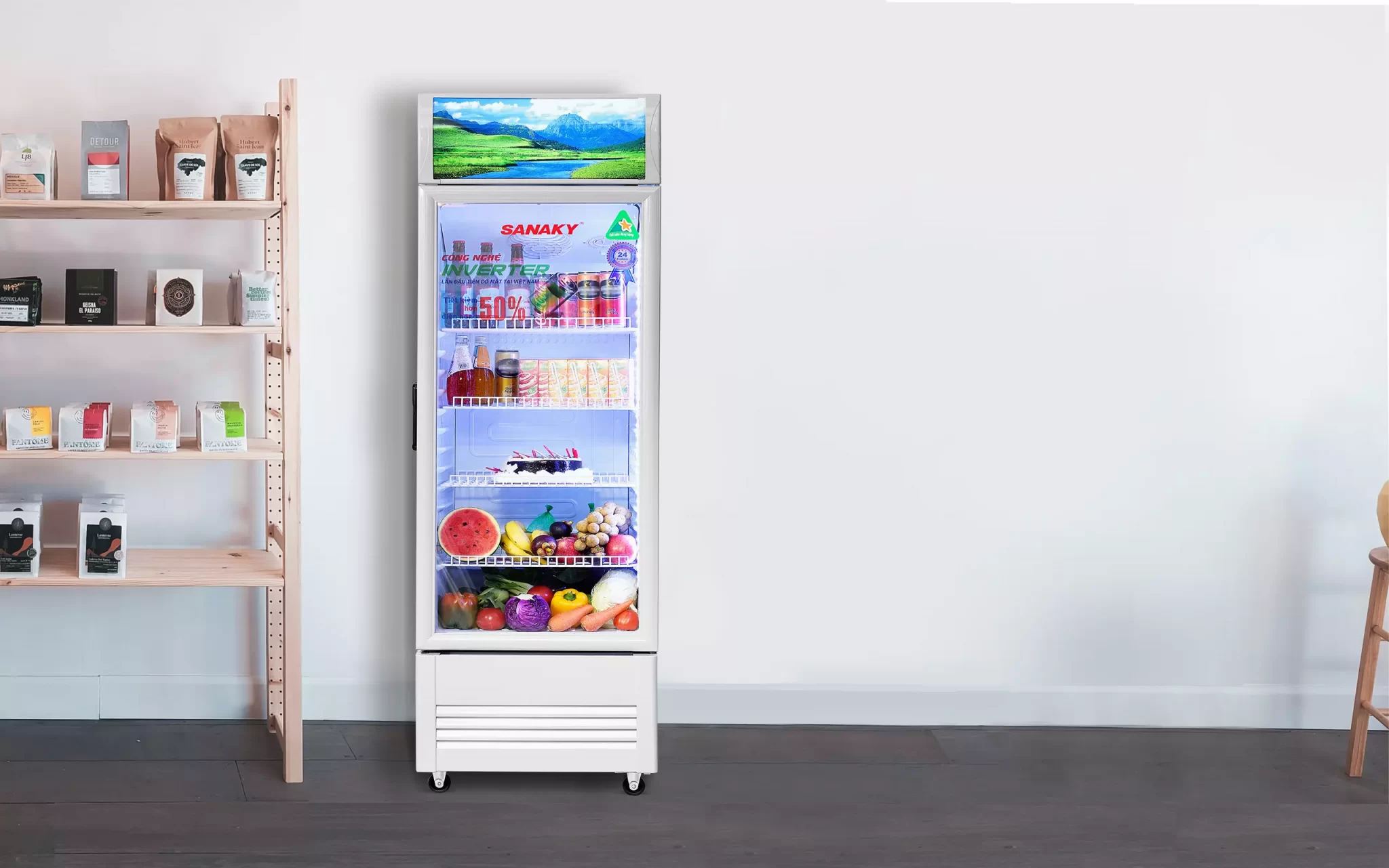 Đèn LED: Tủ mát Sanaky được thiết kế với hệ thống đèn LED dọc theo hông và nóc tủ, chiếu sáng toàn bộ các góc khuất giúp trưng bày các sản phẩm bắt mắt và thu hút. Hơn nữa, hệ thống đèn LED còn tiết kiệm điện năng và có tuổi thọ bền bỉ hơn nhiều lần so với các loại đèn huỳnh quang, đèn sợi đốt,… mang lại giá trị sử dụng lâu dài cho người sử dụng.